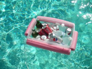 6. Poolside – This hack is great when you don’t want to jump in and out of the pool. But be careful of children who might spill in the pool. Keep an eye on the little ones. The floating ice chest is a great idea!
