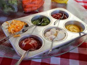 3. BBQ – When you’re fixing up burgers, hot dogs, make the cleaning up after easier. Instead of having to wash 6 different dishes, use a cupcake holder to place the condiments. This way you only have 1 dish to do at the end of the day!